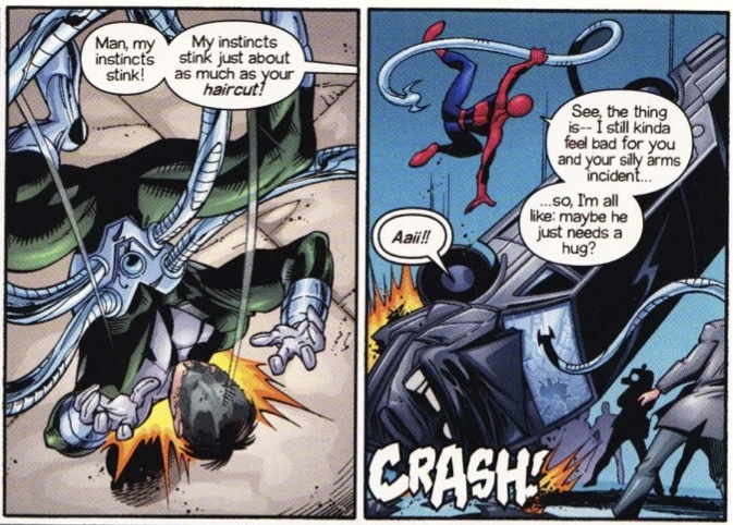 Over a month ago, I had given Eric a couple of comic book collections he had put on his wishlist for his birthday. They were 2001-02 versions of Spider-Man. As a surprise extra, I threw in a reprint of the original Avenger series from 1963. Over the following weeks, I would notice Eric lounging on the couch and happily reading the books out loud with dramatic voices for the characters. Then last week I happened to ask if he had finished all of them. He said he didn’t read the Avengers because it was “too hard.” I asked him to explain, because I thought all superhero comic books were pretty much the same as far as reading level. He said it was “old style --1960’s.” I took a look to see what the heck he was talking about, and was both surprised and amused by the difference.